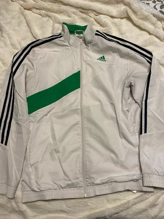 Chaqueta deportiva con un diseño moderno y detalles llamativos. - Mangas con las tres rayas características de Adidas. - Panel diagonal en color verde. - Logo de Adidas en el pecho.