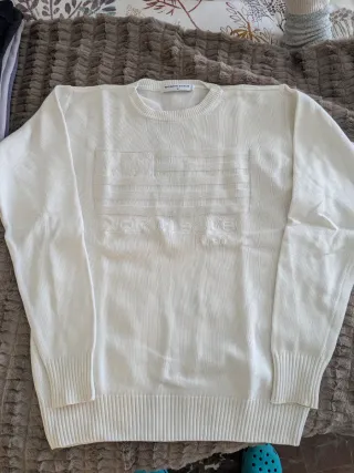 Conjunto de dos jerseys de alta calidad.45€ - Jersey GANT blanco con diseño American Sportswear y escudo. - Jersey Bottega Veneta beige con aplique de oso. - Talla única.