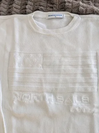 Suéter de punto North Sails en color blanco. Presenta un diseño de bandera americana en relieve en la parte frontal. - Cuello redondo. - Puños y bajo de canalé.