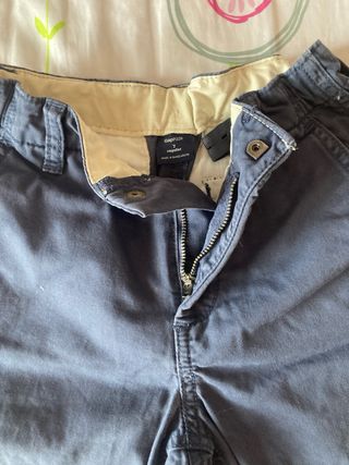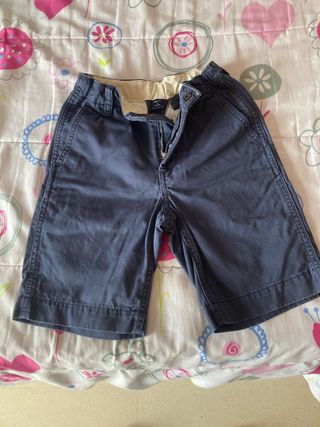Bermudas estilo chino de la marca GAP en talla 7 regular. - Color azul marino. - Cierre de cremallera y botón. - Bolsillos laterales y traseros.