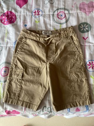 Pantalón corto de algodón para niño. - Cintura elástica con cordón. - Bolsillos laterales. - Bolsillos cargo en los laterales de las perneras. - Cierre de botón y cremallera.