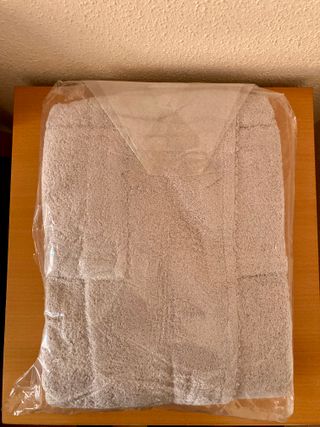 Albornoz gris para hombre o mujer (unisex). Con un bolsillo a cada lado y cinta en el cuello para poder colgarlo. Talla: XL. Composición: 95% algodón y 5% poliamida. Nuevo, nunca se ha utilizado, en su bolsa, solo se ha abierto para ver la composición. Alguna pregunta, no dudes en contactar. Más artículos relacionados con la ropa-complementos y otros variados en mi perfil.