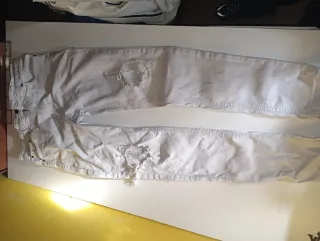 Pantalón vaquero blanco hombre desgarrado
