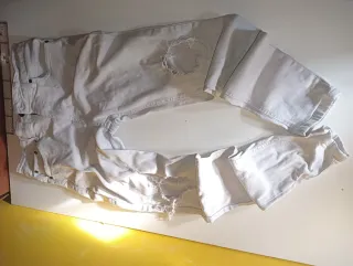 Pantalón vaquero para hombre con un diseño moderno y desgarrado. - Color blanco. - Estilo desgarrado en ambas piernas. - Corte moderno. - talla M o S