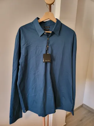 Camiseta de manga larga de Massimo Dutti en color azul petróleo. Nueva a estrenar con etiqueta. - Cuello tipo polo con botones.