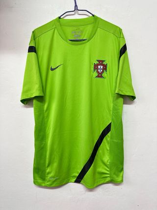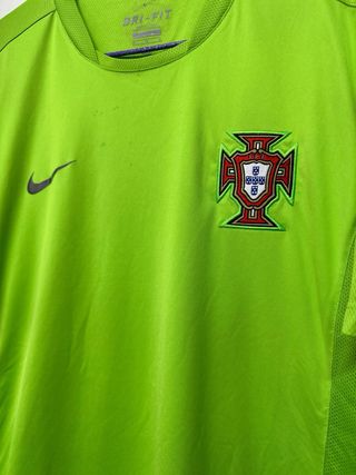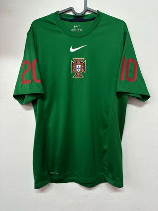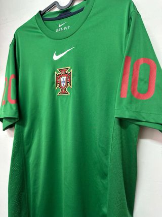 Camiseta de fútbol de Portugal de la marca Nike. Diseño en color verde con detalles distintivos. - Escudo de Portugal bordado. - Logo de Nike. - Número 20 en la manga izquierda. - Número 10 en la manga derecha. - Tecnología Dri-FIT.