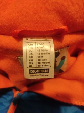 mono de nieve marca Decathlon. talla 18 meses hasta 83 cm. cómo nuevo