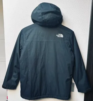 Chaqueta técnica The North Face original en color negro. Es una talla M de niño (Junior/Youth), que por medidas equivale perfectamente a una XS o S de mujer. Ideal para esquí, nieve o uso diario: ✅Jacket System Map: Incluye faldón antinieve interior (Powder Skirt) y bolsillo para forfait en la manga izquierda. ✅Capucha técnica: Con visera exterior y ajuste elástico interior para mayor protección. Estado de la prenda: ✅Falta el tirador en el bolsillo exterior izquierdo ✅Ligero desgaste por roce en el borde de los puños (ver fotos detalle). ✅El resto del tejido y el forro interior están muy cuidados. the north face, tnf, talla s muje
