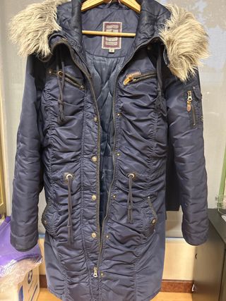 Parka de color burdeos (vino tinto) con forro interior de pelo sintético (borregito) y capucha. - Cierre principal con cremallera y botones a presión. - Bolsillos laterales con solapa y botón. - Cordón ajustable en la cintura. - Puños ajustables. 🥶🧣muy calentita 🧣🥶 tiene forro del borregito 🐑 con la cremallera y los botones ⭕🔴 ver fotos para valorar los desgastes⭕ ⭕ la capucha no tiene el pelo sintético decorativo⭕ 💬No dudes preguntar cualquier cosa Medidas largo 79 cm ancho hombros 42 cm ancho pecho 55 ancho cadera 61 cm largo de mangas (medido desde el cuello) 69 cm pesa 1,80 kg #chaqueton #frio #lluvia #nieve