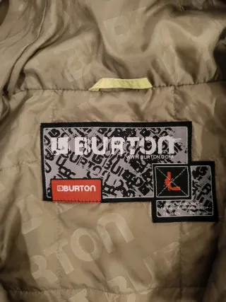 Chaqueta de esquí Burton con un diseño bicolor.Impermeable - Mangas y parte inferior en marrón. - Parte superior y capucha en verde lima - Logo de Burton en el bolsillo frontal. Cremalleras frontal y bolsillos -Medidas largo 80cm pecho 65cm largo mangas 82cm