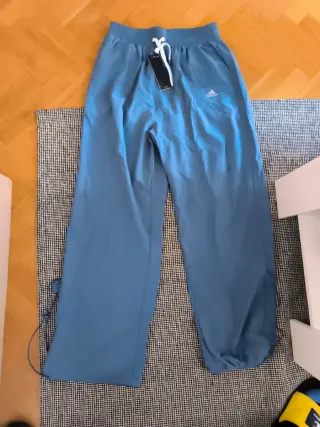 Pantalón de chándal Adidas para mujer en color azul. Diseño moderno y cómodo. - Cintura elástica con cordón. - Logo de Adidas en la pierna. - Cordones ajustables en los bajos. -Impermeable perfecto para nieve o lluvia