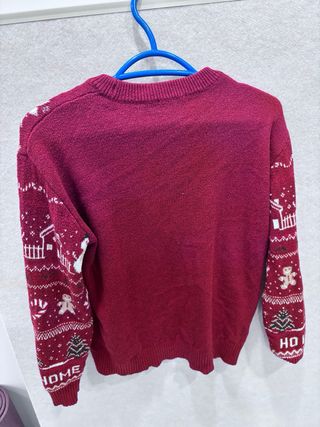 Jersey de punto con temática navideña, talla L. - Diseño con muñecos de nieve, árboles y regalos. - Cuello redondo y manga larga. - Tejido cómodo y cálido.