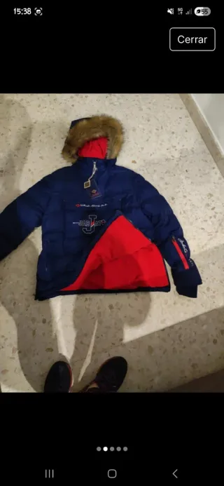 Parka roja con capucha de la marca NAPAPIJRI, forro polar azul marino en el interior.Original, tiene uso pero está cuidada, puesta en pocas ocasiones. Ideal para el frío y la nieve. Precio 50'00 € negociable. He bajado el precio.