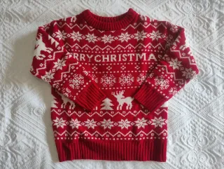 Jersey de Navidad con diseño festivo. - Estampado HO HO HO y MERRY X'MAS. - Motivos de árboles de Navidad, copos de nieve y bastones de caramelo. - Cuello redondo y puños rojos. Talla S. Muy buen estado. SOLO ENVIO.