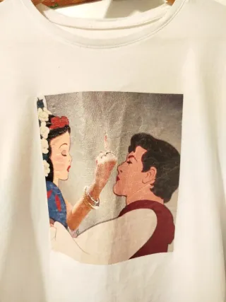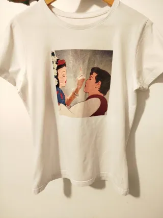Camiseta blanca con estampado de Blancanieves y el príncipe. - Diseño original y llamativo. - Estampado multicolor.