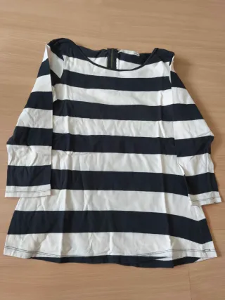Camiseta de media manga con un diseño de rayas clásico. - Cuello redondo. - Cierre de cremallera en la espalda. - Tejido cómodo y transpirable.