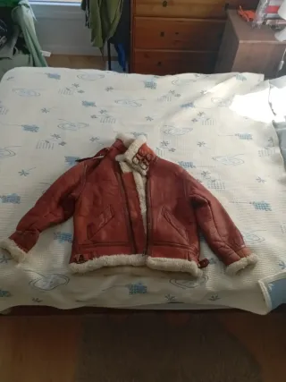 Chaqueta de estilo aviador con forro interior de borreguito. - Exterior de ante sintético en color marrón. - Cuello y puños con detalle de pelo sintético en color beige. - Cierre de cremallera frontal y en bolsillos.