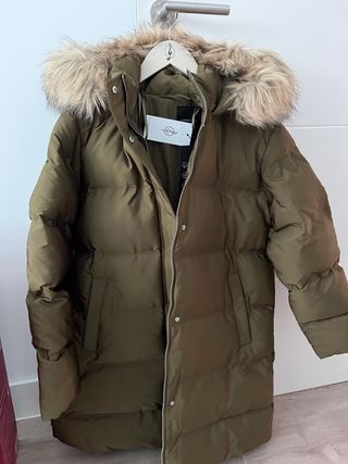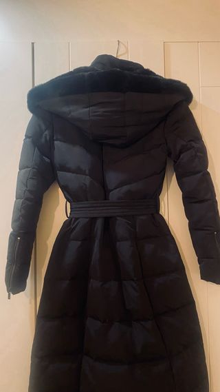 Abrigo de invierno que abriga de verdad y queda precioso puesto. Vendo plumífero largo original MORGAN para mujer, talla XS, en color azul marino muy oscuro / negro, en muy buen estado. Es un abrigo muy calentito, ideal para los días de frío, y con un corte femenino que estiliza muchísimo. Por qué te va a encantar Largo (por debajo de la rodilla) → abriga piernas y caderas Acolchado y muy calentito, perfecto para invierno Capucha con pelo muy suave, elegante y agradable Relleno sintético → abriga mucho sin pesar Cinturón ajustable en la cintura → marca silueta y queda muy favorecedor Corte elegante