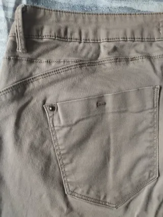 Pantalón pitillo de corte ajustado para mujer de marca Jocavi Line. - Diseño liso color beige. - Tejido vaquero fino. - Algodón con algo de lycra. - Estilo pitillo/ skinny. - Pone Talla 44 pero es una 42 (14 Uk) - Sin usar