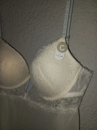 Conjunto de ropa de boda en color blanco, ideal para una ocasión especial. - Diseño delicado con detalles de encaje. - Tejido ligero y vaporoso. -Copa C ESTA SIN USAR.VA CON ETIQUETA