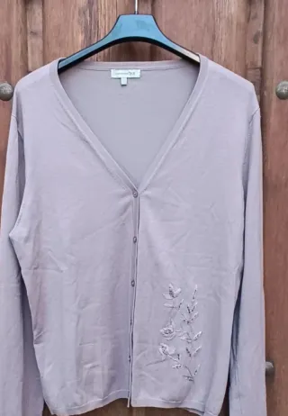 Chaqueta de punto fina con un delicado bordado floral en la parte delantera. - Cuello en V. - Cierre de botones. - Manga larga.