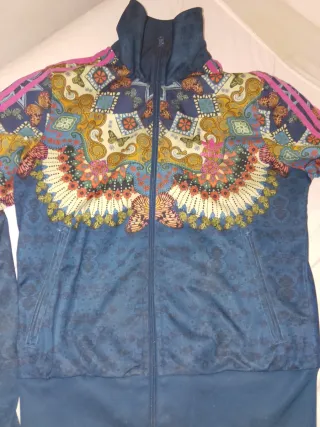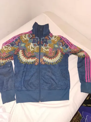 Sudadera Adidas Originals con un diseño vibrante y llamativo. - Mangas con las icónicas tres rayas. - Cuello alto con cremallera. - Estampado frontal detallado con motivos florales y mariposas. - Puños y cintura elásticos.