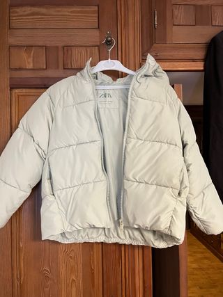 Plumífero acolchado de Zara en color verde. Es una prenda cómoda y ligera, perfecta para el entretiempo. - Diseño con capucha. - Cierre de cremallera frontal. - Bolsillos laterales.