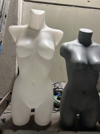 Se venden varios maniquíes de torso, uno blanco y otro gris. Son ideales para exhibir ropa. - Maniquí de torso femenino. - Material resistente.