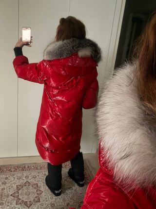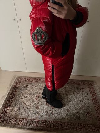 Elegante plumas de la marca Mangata en un llamativo color rojo. Ideal para mantenerte abrigada con estilo. - Capucha con detalle de pelo. - Diseño acolchado brillante. - Cierre frontal.
