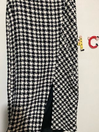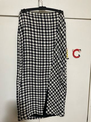 Falda midi con un diseño de cuadros estilo tweed, muy elegante. - Abertura lateral. - Tejido texturizado. - con etiqueta, sin estrenar - Talla S, marca Mango