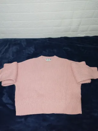 Prenda de punto de manga corta. - Diseño de cuello redondo. - Tejido texturizado. - Bajo con detalle de canalé.