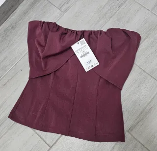 Top de mujer de Zara con un diseño elegante y moderno. - Color rojo intenso. - Talla L (40/12). - Tejido con caída y acabado satinado.