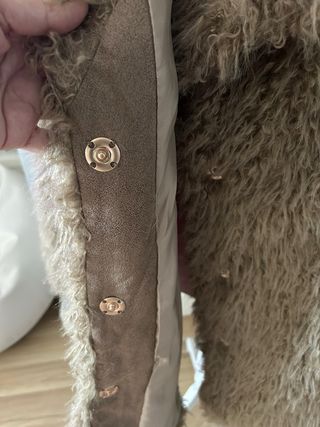 Elegante chaquetón de pelo sintético, ideal para añadir un toque de estilo a cualquier conjunto. - Cierre con botones de corchetes dorados. - Bolsillos laterales.
