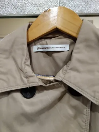 Gabardina clásica de color beige, perfecta para cualquier ocasión. - Diseño atemporal. - Cinturón ajustable para un mejor ajuste. - Cuello con solapas. - Cierre de botón.
