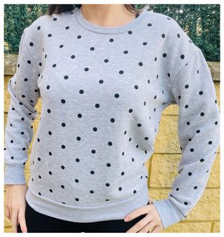 Sudadera cómoda con un diseño de lunares. - Diseño de lunares negros. - Cuello redondo. - Puños y bajo elásticos.
