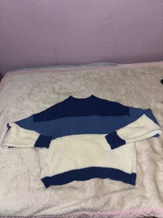 Jersey de punto con diseño de rayas horizontales en diferentes tonos de azul y blanco. Cuello redondo y mangas largas. - Diseño a rayas. - Tejido de punto.