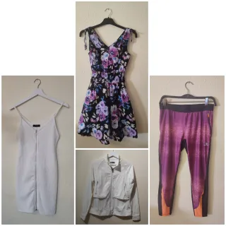 Se vende ropa para mujer nueva en perfectas condiciones, sin utilizar. Oferta: 2 prendas x 12€. 3 prendas x 22€. 4 prendas x 28€. Precios de prendas solas: - Vestido blanco de Bershka talla M/ 38/ 10 por 8€. - Vestido de tirantes floral talla M/ 38/ 10 por 8€. - Chaqueta deportiva Lija talla M/ 38/ 10 por 8€. - Leggins deportivos de Domyos talla M/ 38/ 10 por 8€.