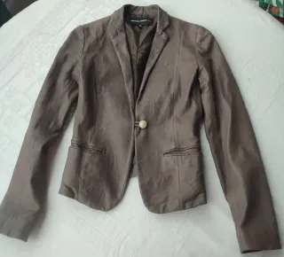 Elegante blazer para mujer en tono marrón. Un básico versátil para cualquier armario. NUEVA CON ETIQUETA - Diseño abierto. - Bolsillos frontales con cremallera. - Forro interior.