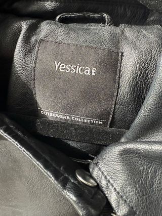 Chaqueta de efecto piel con un diseño moderno y versátil. - Cierre frontal asimétrico. - Bolsillos con cremallera. - Detalle de cinturón en el bajo. -Pequeño desperfecto en la zona del cuello.