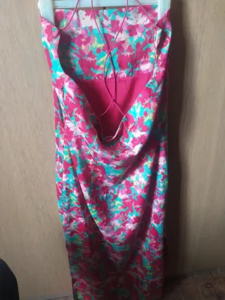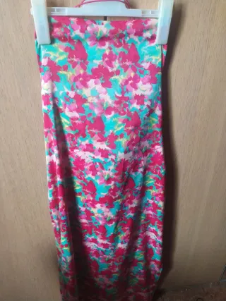 Vestido de la marca Pimkie con un bonito estampado floral. - Diseño con flores en tonos fucsia y turquesa. - Corte recto y largo. - Tejido ligero y fluido. - Con forro