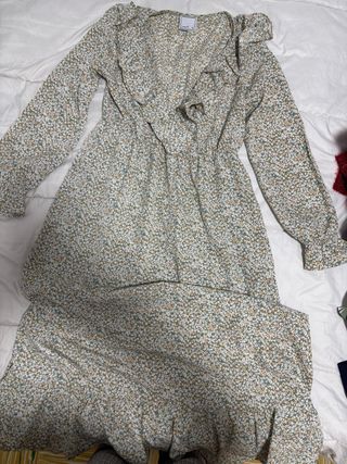 Vestido de Zara con estampado floral. - Manga tres cuartos. - Corte imperio. - Bajo con volante.