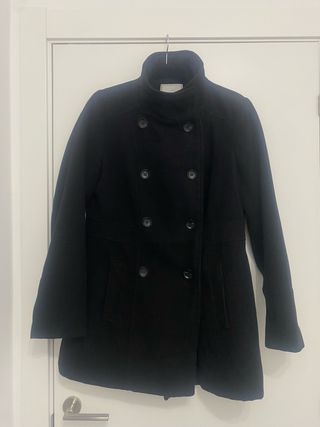Elegante abrigo de paño en color negro. Un clásico que no puede faltar en tu armario. - Diseño de doble abotonadura. - Cuello alto. - Bolsillos laterales.
