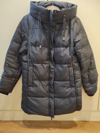 Chaqueta acolchada de mujer con capucha.talla M, medidas en las fotos.Color azul marino con un poco de brillo. - Diseño acolchado. - Cierre de cremallera. - Bolsillos laterales. #zara#lee#desigual#mango#primark#Cortefiel#adidas#puma#abrigo#parka#chaqueta#abrigo#chaqueton#loden#lana