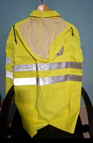 Abrigo largo con capucha y cremallera. - Diseño reversible con interior en amarillo. - Dos bolsillos frontales. - Costuras decorativas en contraste.