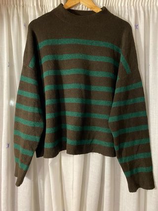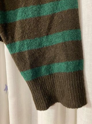 Jersey de punto con un diseño de rayas horizontales. Es una prenda cómoda y versátil. - Cuello alto. - Manga larga. - Tejido suave.