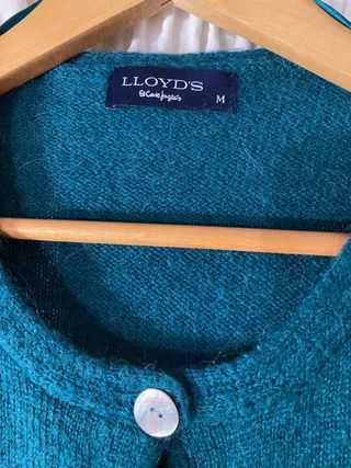 Jersey de punto fino en un bonito color verde azulado. Es una prenda cómoda y versátil. Tiene lana. - Cuello redondo. - Cierre de botones. - Manga larga.