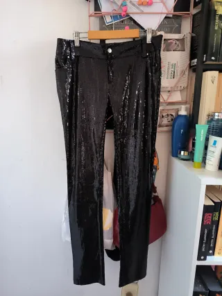 Pantalón lentejuelas Zara negro mujer