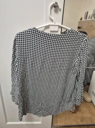 Blusa de mujer con un estampado geométrico. - Diseño de rombos en blanco y negro. - Manga larga.