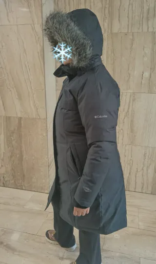 Abrigo de plumón impermeable Columbia para mujer. Diseñado para mantenerte abrigada y seca. Perfecto para temperaturas muy bajas! Usado 1 sola vez, como nuevo. Precio nuevo 250€. - Color gris - Capucha con ribete de pelo. - Cierre frontal con cremallera y solapa. - Bolsillos laterales con cremallera. - Puños interiores para mayor protección. - Impermeabilidad y transpirabilidad La tecnología de sellado de costuras Omni-Tech™, junto con el tejido impermeable y transpirable, evita que se filtre la humedad, para que estés a gusto y a salvo del agua cuando llueva.