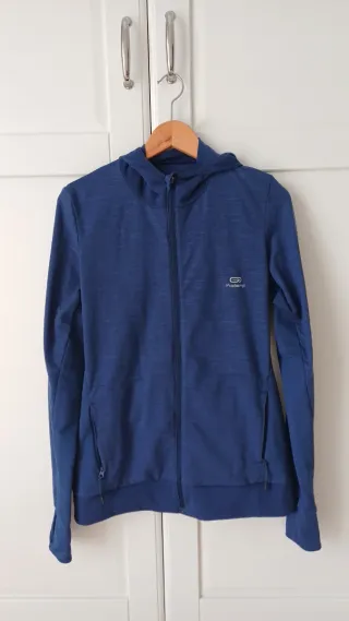 Sudadera con capucha de la marca Kalenji. - Color azul. - Diseño con cremallera completa. - Bolsillos laterales con cremallera. - Puños con abertura para pulgar.